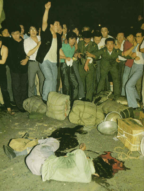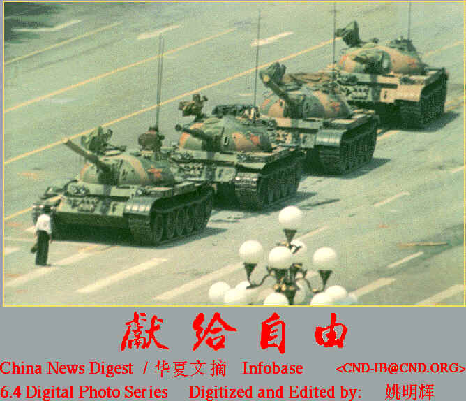 There is a lesson for all of us who love our freedom, from what is happening in China. The "People's Government" of China used their "People's Army" to suppress a people's rebellion. The sight of human bodies in Tiananmen Square matted to the concrete by tanks should not be forgotten.